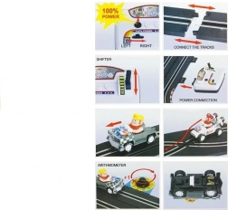 Il vantaggio di questo gioco è non solo lo sviluppo della creatività e motricità del bambino, ma anche la facilità di montaggio della pista, che diverte e soddisfa ogni piccolo corridore. La pista è alimentata da 4 batterie AA (non incluse) ed è adatta a bambini dai 5 anni in su.