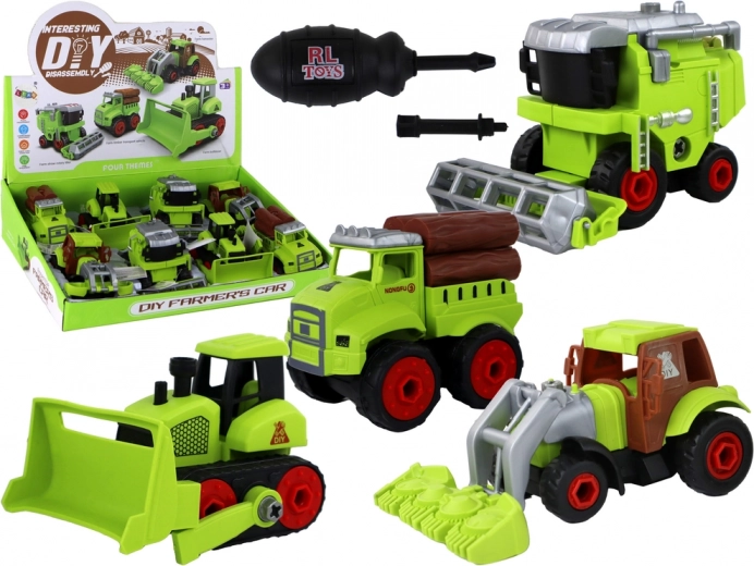 Esplora il mondo dei veicoli agricoli che si montano e smontano autonomamente. Questo set include quattro modelli - bulldozer, mietitrebbia, carro cisterna e trasportatore di legname. Ogni modello è progettato per adattarsi a diversi interessi e desideri dei bambini.