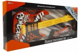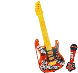 Scopri il divertente chitarra elettrica con microfono, progettato perfettamente per i piccoli appassionati di musica. Questa chitarra è realizzata in plastica di alta qualità e presenta un design rosso-giallo vivace. La chitarra è arricchita da eleganti effetti di luce e pulsanti interattivi che permettono un facile controllo di varie canzoni e suoni.