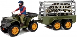 - Quad, rimorchio/cassa di trasporto rimovibile con sponda posteriore apribile, figurina del conducente, figurina di zebra