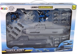 Tuffati in una battaglia navale ricca d’azione con il set militare completo per bambini! Due sottomarini realistici con ruote per un facile movimento, tre caccia e numerosi proiettili garantiscono ore di divertimento e gioco strategico. Il sottomarino ha un lanciaproiettili funzionante: basta caricare, tirare indietro e via allo scatto d’azione! L’intero set è realizzato in plastica resistente, ha la certificazione CE ed è ideale per i piccoli appassionati dell’esercito dai 3 anni in su.