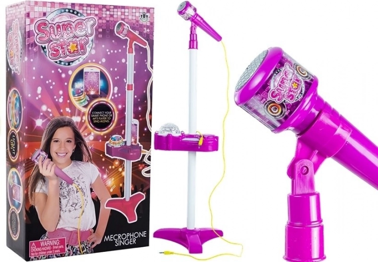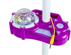 Questo microfono multifunzionale per bambini su treppiede trasforma la cameretta in un piccolo palcoscenico. Il pannello interattivo con altoparlante integrato, pulsanti per cambiare le basi e regolare il volume è affiancato da un magico disco proiettore che diffonde luci colorate vorticose. Grazie al cavo incluso è possibile collegare il telefono o il lettore MP3 e cantare sulle proprie canzoncine.