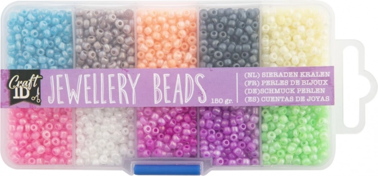 Scopri un bellissimo set di perline con 10 colori diversi, perfettamente organizzato in un pratico contenitore in plastica.