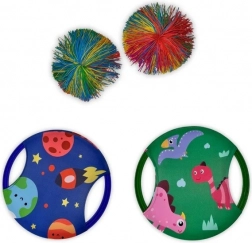 Scopri un divertimento semplice e coinvolgente per tutta la famiglia. Il set per rimbalzo include due palette rotonde con manico e morbide palline colorate tipo pom‑pom, facili da afferrare e da far rimbalzare. Grazie alla superficie tessile e al leggero telaio in plastica, il gioco è sicuro, intuitivo e adatto ai principianti.