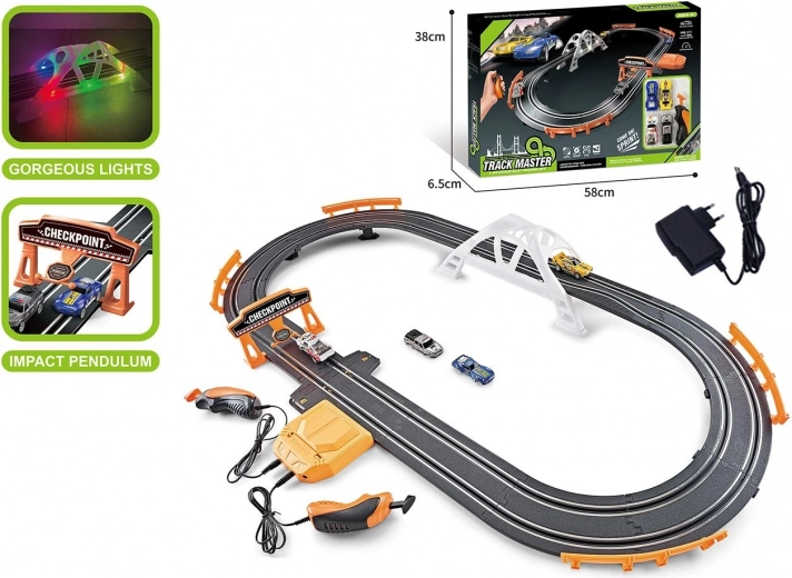 Goditi il divertimento dinamico ed emozionante che questa pista da corsa offre grazie alla sua lunghezza di 2,5 metri. È realizzata in plastica di alta qualità, che garantisce durabilità e stabilità durante le gare intense. Il set è progettato appositamente per bambini dagli 8 anni ed il suo design certamente attirerà i piccoli ragazzi.