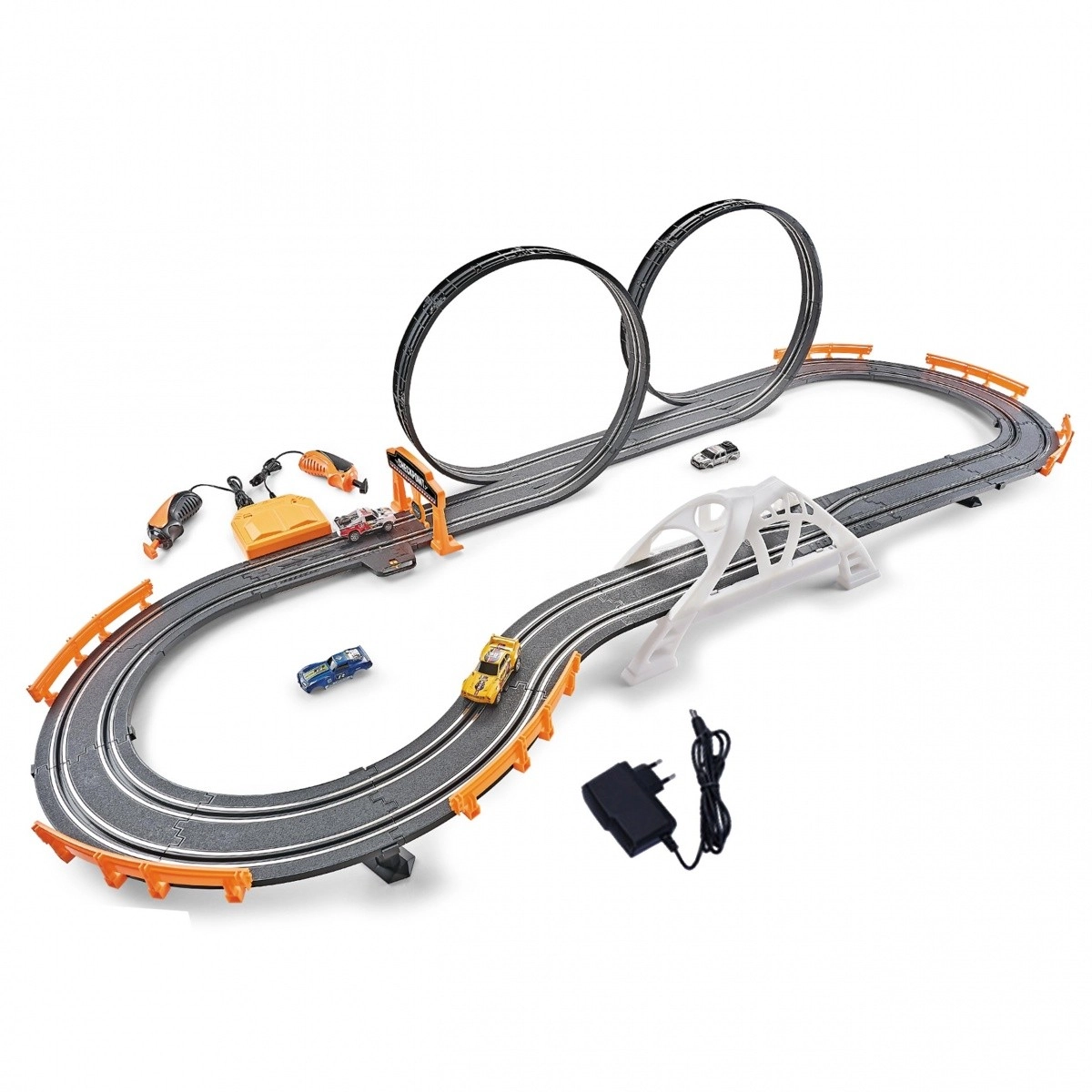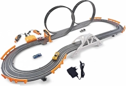 Scopri l'incredibile pista da corsa, che misura complessivamente 520 cm e offre un divertimento dinamico ed emozionante per ogni giocatore. Il set include due auto con la possibilità di cambiare la carrozzeria, permettendo di personalizzare l'aspetto dei veicoli in base alle proprie preferenze.
