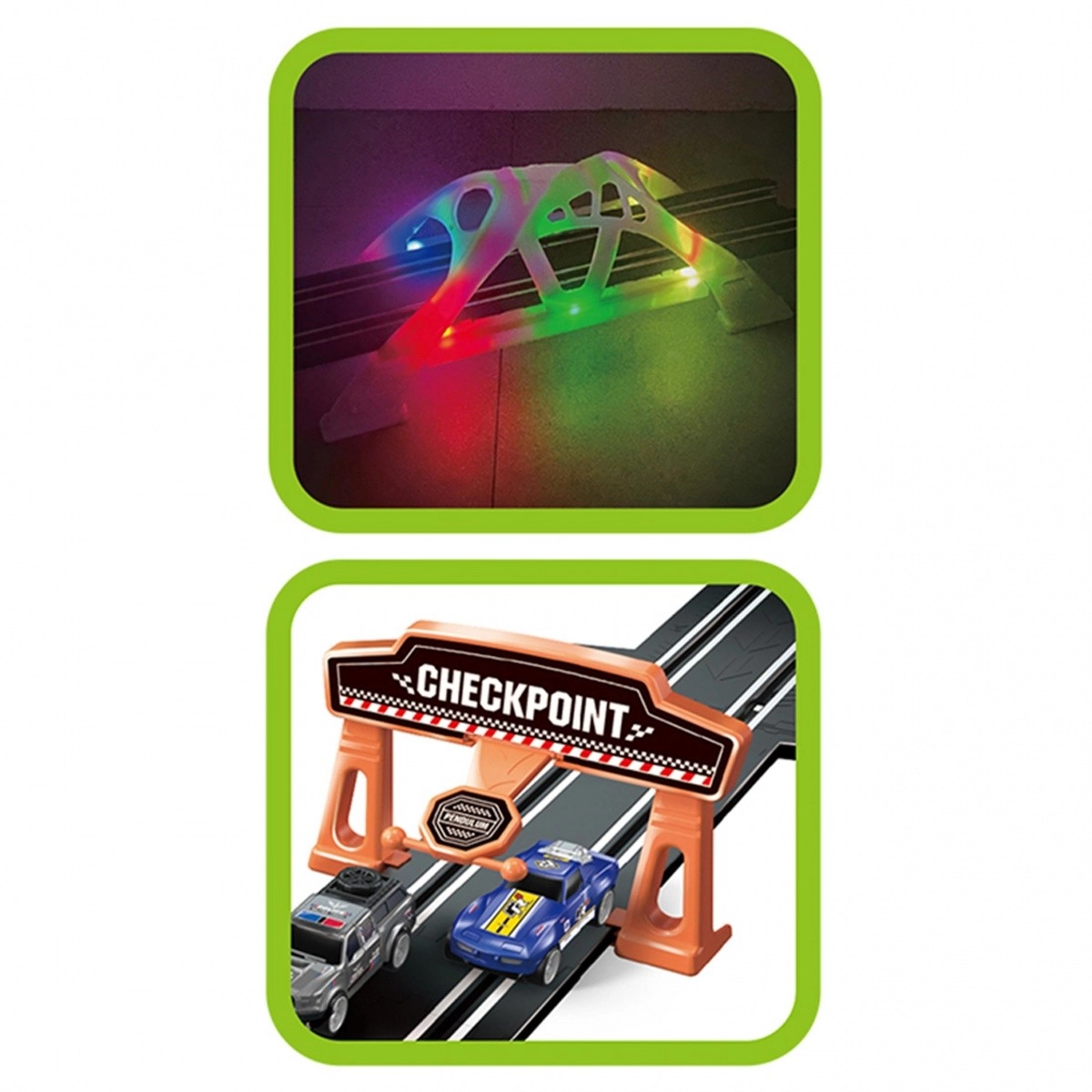 Grazie a due loop e al ponte illuminato, questa pista offre esperienze di gara straordinarie.