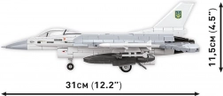 Costruisci un modello COBI F‑16 AM Fighting Falcon dettagliato e con licenza ufficiale nella livrea dell'Ucraina, composto da 500 pezzi in scala 1:48. Inclusi minifigure del pilota, supporto/espositore e armamento rimovibile (Storm Shadow, AIM‑9, AIM‑120). I pezzi presentano stampe permanenti senza adesivi e sono compatibili con altre marche.