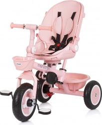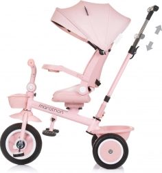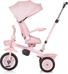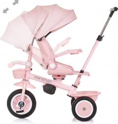 Il triciclo con tettoia Marathon 2v1 Flamingo è progettato per offrire massimo comfort e sicurezza sia per i bambini che per i genitori grazie alle sue opzioni variabili. All'inizio, i genitori possono guidare il triciclo mediante un comodo manico rivestito in ecopelle, e una volta che il bambino cresce abbastanza, può guidare autonomamente.