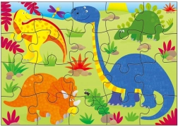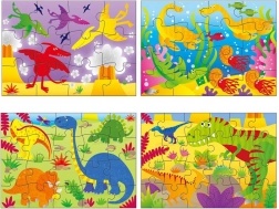 Scoprite divertenti puzzle per bambini a tema dinosauri in una pratica valigetta – set di quattro immagini con difficoltà progressiva (12, 16, 20 e 24 pezzi). Ideale per bambini dai 3 anni, che sviluppano logica, motricità fine e pazienza mentre compongono. La confezione compatta con maniglia in plastica è perfetta per i viaggi.