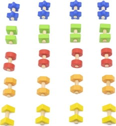 Giocare con viti e dadi colorati sviluppa la motricità fine e la coordinazione occhio-mano. Consente inoltre ai bambini di scoprire nuove forme e colori, supportando abilità e creatività.
