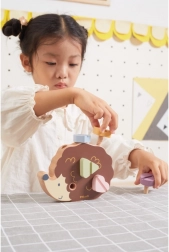 Il riccio di legno consente ai bambini di allenare la motricità fine attraverso viti di diversi colori e forme.