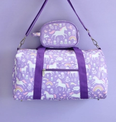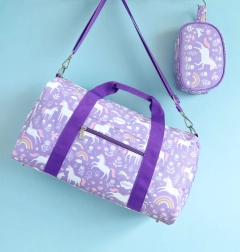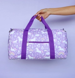 Borsa da viaggio per bambini progettata per il massimo comfort e funzionalità. È dotata di due manici a mano e una tracolla staccabile, che garantiscono un comodo trasporto. La capiente tasca principale è arricchita da un'altra tasca, due tasche laterali e un compartimento frontale con cerniera, che offrono spazio sufficiente per tutto ciò di cui il tuo bambino ha bisogno. La borsa è ideale sia per attività sportive che per gite in famiglia, e può essere utilizzata anche come bagaglio a mano in aereo. Il materiale della borsa è leggero, robusto, e presenta un allegro motivo di unicorni e arcobaleno.