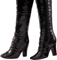 - Outfit dettagliato: abito nero‑viola, mantellina rimovibile, gonna rimovibile, scarpette.