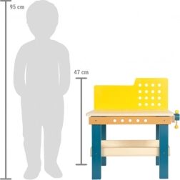 Scoprite la postazione di lavoro perfetta per i piccoli artigiani. Questo stabile banco da lavoro in legno SMALL FOOT Workshop offre elementi realistici come morsa integrata, piano di lavoro forato e pegboard gialla per fissare i pezzi. I bambini possono martellare, segare e avvitare, sviluppando abilità manuali e pensiero tecnico.