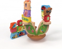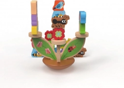 Posare pezzi di dimensioni diverse sulla base di equilibrio aiuta i bambini a imparare precisione, concentrazione e coordinazione dei movimenti, in modo divertente e senza schermi.