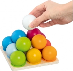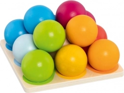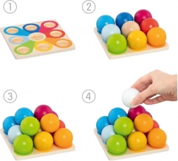 Questa piramide di palline in legno è uno strumento ideale per lo sviluppo delle abilità dei bambini. I bambini possono ordinare le palline per colore e impilarle in diverse forme, sviluppando la loro creatività. Ogni pallina è caratterizzata da colori vivaci che insegnano ai bambini la varietà cromatica.