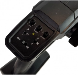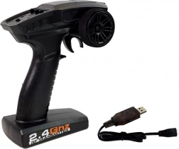 Il trasmettitore ergonomico consente una modulazione fine dell'acceleratore e uno sterzo preciso. La frequenza a 2,4 GHz elimina le interferenze e una portata fino a 80 m offre libertà di guida. Alimentazione 3× AA (non incluse).