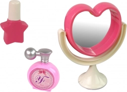 Lo specchietto a forma di cuore con supporto, lo smalto per unghie e il profumo (imitazioni) stimolano la fantasia e favoriscono il gioco di ruolo nel salone di bellezza dei bambini.