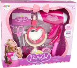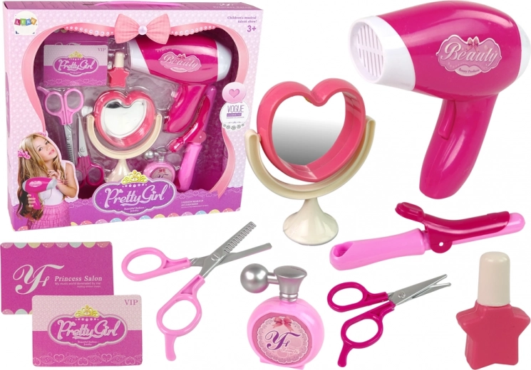 Inclusi uno specchio a cuore con base, un ferro arricciacapelli giocattolo, forbici e accessori cosmetici, grazie ai quali i bambini possono inventare nuove acconciature e rituali “beauty”. La confezione è ideale come regalo per piccoli stilisti dai 3 anni.