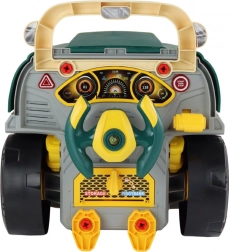 Questa officina di montaggio per bambini a forma di camion verde unisce gioco e apprendimento in uno. I bambini possono svitare le ruote, aprire il cofano ed esplorare il motore, allenando coordinazione mano-occhio e pazienza. Il cruscotto interattivo con volante, clacson, pulsante start/stop, pulsante di emergenza e selettore delle “marce” offre esperienze di guida realistiche.