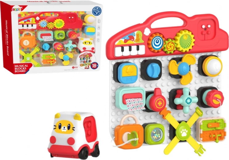 - Maniglia portatile e pianoforte: La parte superiore del pannello è dotata di una pratica maniglia per un facile trasporto e include 4 tasti di pianoforte con melodie che stimolano l’udito e favoriscono l’interazione.
