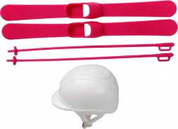 Il set include sci, bastoncini e casco, che permettono un gioco autentico da sciatrice.