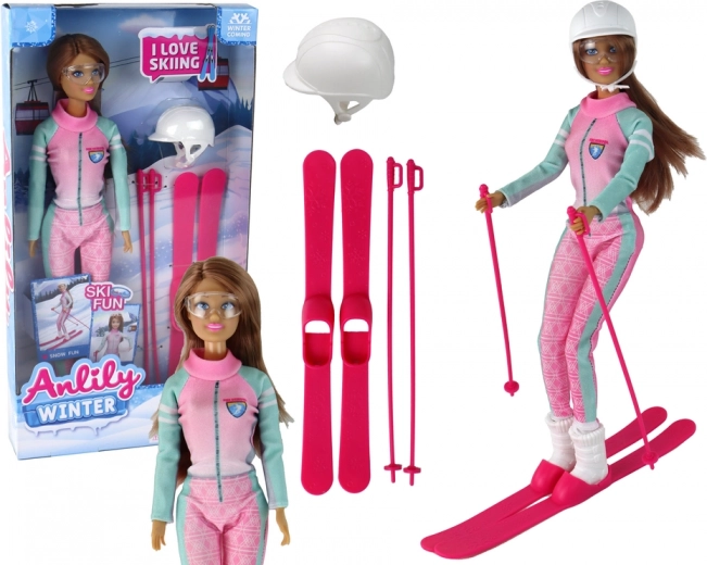 Scendi le piste con la bambola Anlily, vestita in un elegante completo rosa-tormalina.