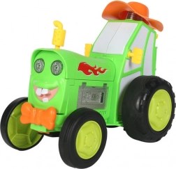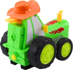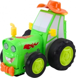 Il divertente trattore verde radiocomandato offre ai bambini ore di azione. Può andare avanti/indietro, sterzare e, premendo due pulsanti, eseguire un acrobatico trucco su due ruote. Durante la guida si illumina e riproduce una melodia allegra, favorendo lo sviluppo della motricità e della coordinazione. Adatto dai 3 anni in su.