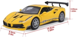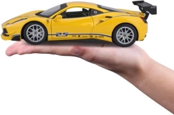 Modello in metallo dettagliato dell’auto da corsa FERRARI 488 CHALLENGE in scala 1:24 del marchio Bburago, che farà felice ogni collezionista e i giovani appassionati di auto veloci. Lavorazione precisa, parti apribili e autentici dettagli da corsa nel vivace colore giallo rendono questo modello un ottimo complemento per la vetrina e un regalo perfetto.