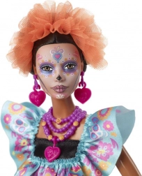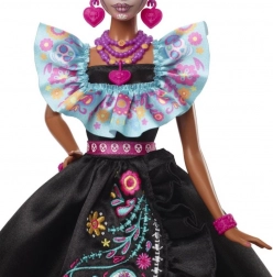 Barbie continua la sua edizione Dia de Muertos con un outfit sofisticato, riccamente decorato, che onora le tradizioni.