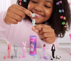 Le mini bamboline BARBIE Cutie Reveal portano la gioia della scoperta: togli il cappuccio del costume animale e svela il volto, i capelli e lo stile unici. Ogni personaggio ha la vita snodabile e può essere esposto su un supporto a forma di cuore. È incluso anche un mini animaletto per inventare facilmente storie tutte loro.