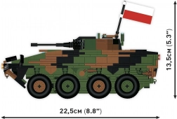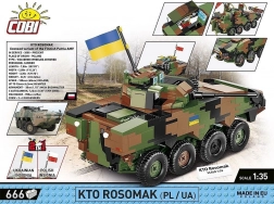 Il modello Rosomak in scala 1:35 offre la possibilità di un assemblaggio dettagliato completo di assi ruota girevoli, portelli apribili e stampe precise dell'esercito polacco. Nel pacchetto ci sono anche due bandierine che rappresentano gli stati che utilizzano questo tipo di veicolo - Polonia e Ucraina. Una targhetta con il nome del veicolo può essere esposta accanto al modello!