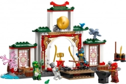Il set LEGO NINJAGO Tempio dello Spinjitzu ninja trasporta i piccoli fan nel mondo dei tornei, dell'allenamento e dei rituali del tè. La sala da tè, il piccolo giardino e l'area di pratica invitano a inventare storie, mentre le due piattaforme girevoli sull'arena del torneo danno il via a entusiasmanti duelli tra ninja.
