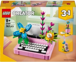 Il set Creator 3-in-1 - Macchina da scrivere con fiori permette ai bambini dagli 8 anni di costruire e ricostruire tre modelli diversi utilizzando gli stessi mattoncini.