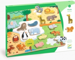 Scopri la magia del puzzle in legno con animali, che non solo sviluppa il tuo bambino, ma offre anche ore di divertimento. Questo puzzle colorato supporta la coordinazione occhio-mano e il pensiero logico. I singoli pezzi hanno diverse sagome di sfondo, che facilitano l'assemblaggio corretto.