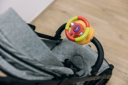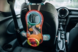 - Si fissa facilmente al seggiolino auto o al passeggino tramite clip e fibbie, ideale per viaggi divertenti.