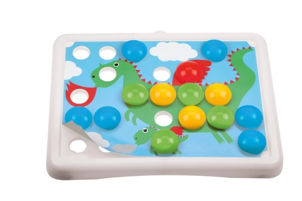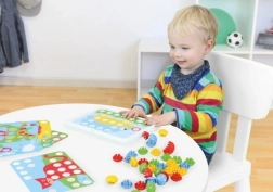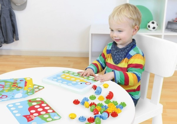 Questo gioco a mosaico con pioli grandi e lisci è un ottimo modo per sostenere i bambini nello sviluppo delle abilità in modo divertente. Grazie alle schede chiare e alla tavola forata, i bambini imparano la coordinazione mano–occhio, allenano la pazienza e sviluppano la fantasia. I pezzi grandi sono facili da impugnare e da inserire in sicurezza.