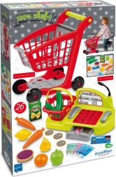 Il set da gioco per bambini a tema negozio offre tutto ciò di cui i piccoli commessi hanno bisogno: carrello della spesa, cassa con soldi, carta di pagamento, scanner e microfono, inclusi accessori di frutta e verdura e un piccolo cestino a mano. Ideale per sviluppare fantasia, abilità sociali e motricità.