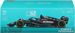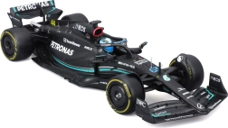 Modello in metallo dettagliato dell’auto MERCEDES‑AMG PETRONAS F1 W14 in scala 1:24 con il numero 63 del pilota George Russell. Lavorazione precisa con verniciatura autentica, elementi aerodinamici realistici, decal sponsor e ruote liberamente rotanti, ideale sia come pezzo da collezione sia come elegante decorazione per la scrivania o la vetrina.