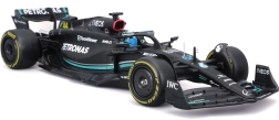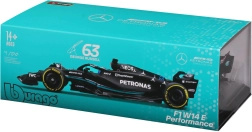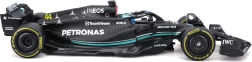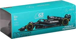Questo modello ufficialmente licenziato MERCEDES‑AMG PETRONAS F1 W14 (2023) di Bburago riproduce fedelmente forme, colori e dettagli della monoposto della stagione 2023, incluso il numero di gara 63 di George Russell. La livrea nera con accenti turchesi, le accurate grafiche degli sponsor e gli elementi iconici come halo e ali esaltano l’aspetto realistico.