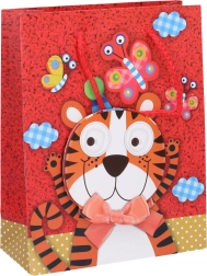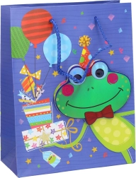La graziosa busta regalo per bambini in misura S farà felice ogni piccolo festeggiato. Offre un formato pratico di 23 × 18 × 8 cm e motivi di quattro animali amati: fenicottero, tigre, elefante e rana. Ideale per confezionare piccoli regali, giocattoli e dolci.