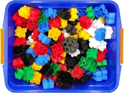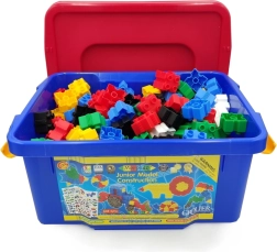 Il set include 424 pezzi diversi a forma di quadrati, triangoli e elementi di collegamento che sviluppano l'immaginazione e la creatività dei bambini.