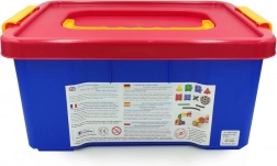 La scatola con coperchio rosso e base blu è ideale per conservare e trasportare i blocchi, aiutando a mantenere l'ordine.