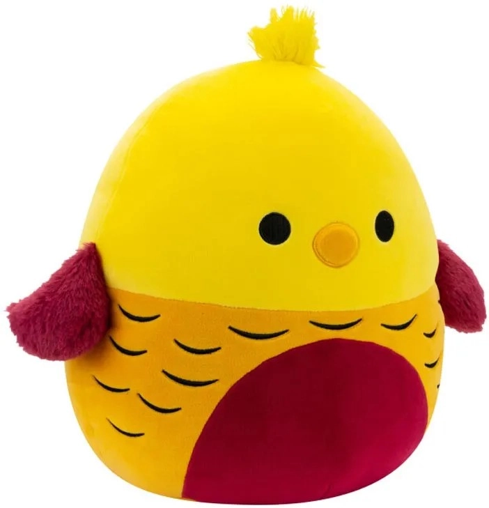 Squishmallows Beck è un uccellino giallo tondeggiante con morbide piume in peluche, alucce evidenti e un beccuccio adorabile. Grazie al materiale piacevole e alla comoda dimensione di 30 cm, si tiene benissimo in braccio e conquista subito il cuore di grandi e piccini.