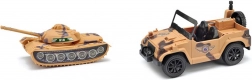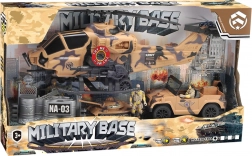Elicottero, jeep, carro armato, 3 figurine di soldati, accessori