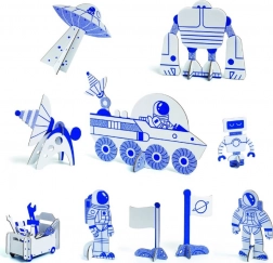 Nel set sono incluse sagome da colorare e oltre 55 pezzi di arredi e accessori (robot, satelliti, tablet ecc.) che stimolano l'immaginazione e la motricità fine. Materiali certificati FSC garantiscono l'origine responsabile di carta e cartone.