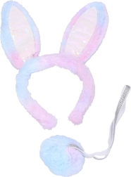 Delizioso set di carnevale per trasformarsi in un coniglietto scintillante. Ideale per carnevali, balli in maschera e servizi fotografici a tema. La confezione include orecchie e coda, che completano facilmente qualsiasi costume.