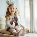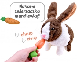 Il semplice utilizzo è adatto anche ai più piccoli: aziona ON/OFF, premi delicatamente il fianco e guarda il coniglietto prendere vita. Inserendo la carotina nella bocca si sente un autentico suono di sgranocchiamento, che rende il gioco ancora più realistico.