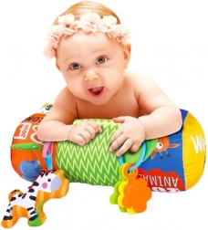 Il rullo può essere utilizzato anche come stabilizzatore nel seggiolino auto, nella carrozzina o a casa. I colori vivaci e i disegni attirano l'attenzione del bambino e stimolano i sensi della vista, udito e tatto. Il rullo ha dimensioni di 42 x 16 x 16 cm ed è realizzato con materiali facili da mantenere.